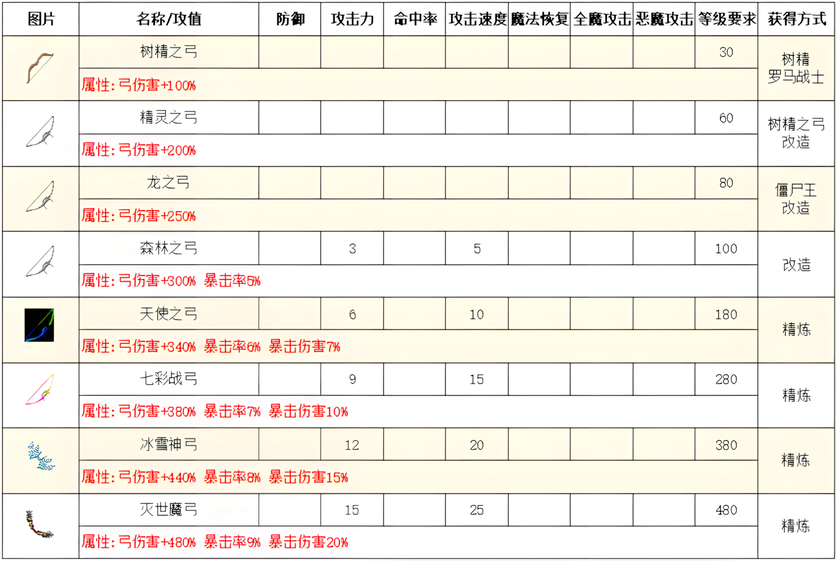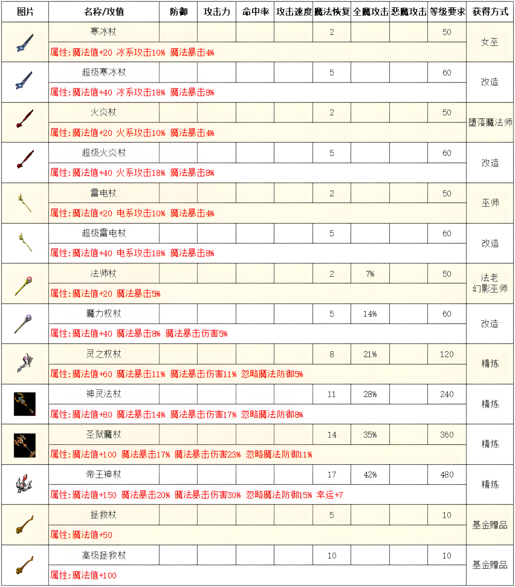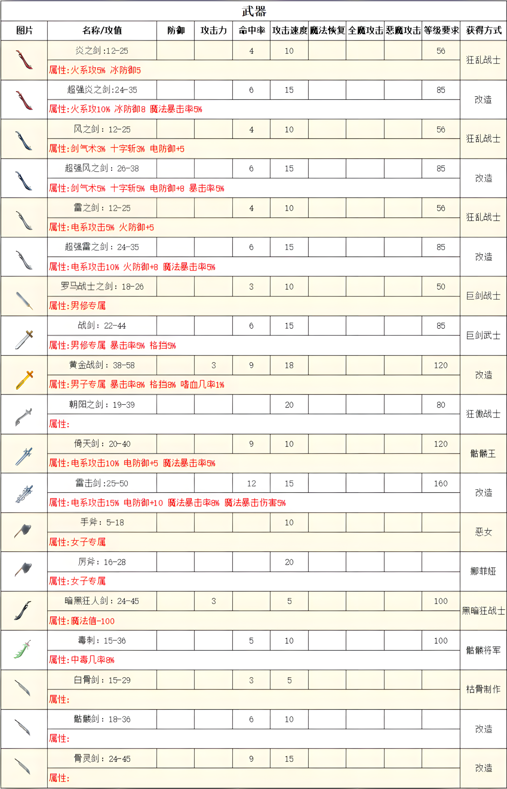 高级属性表