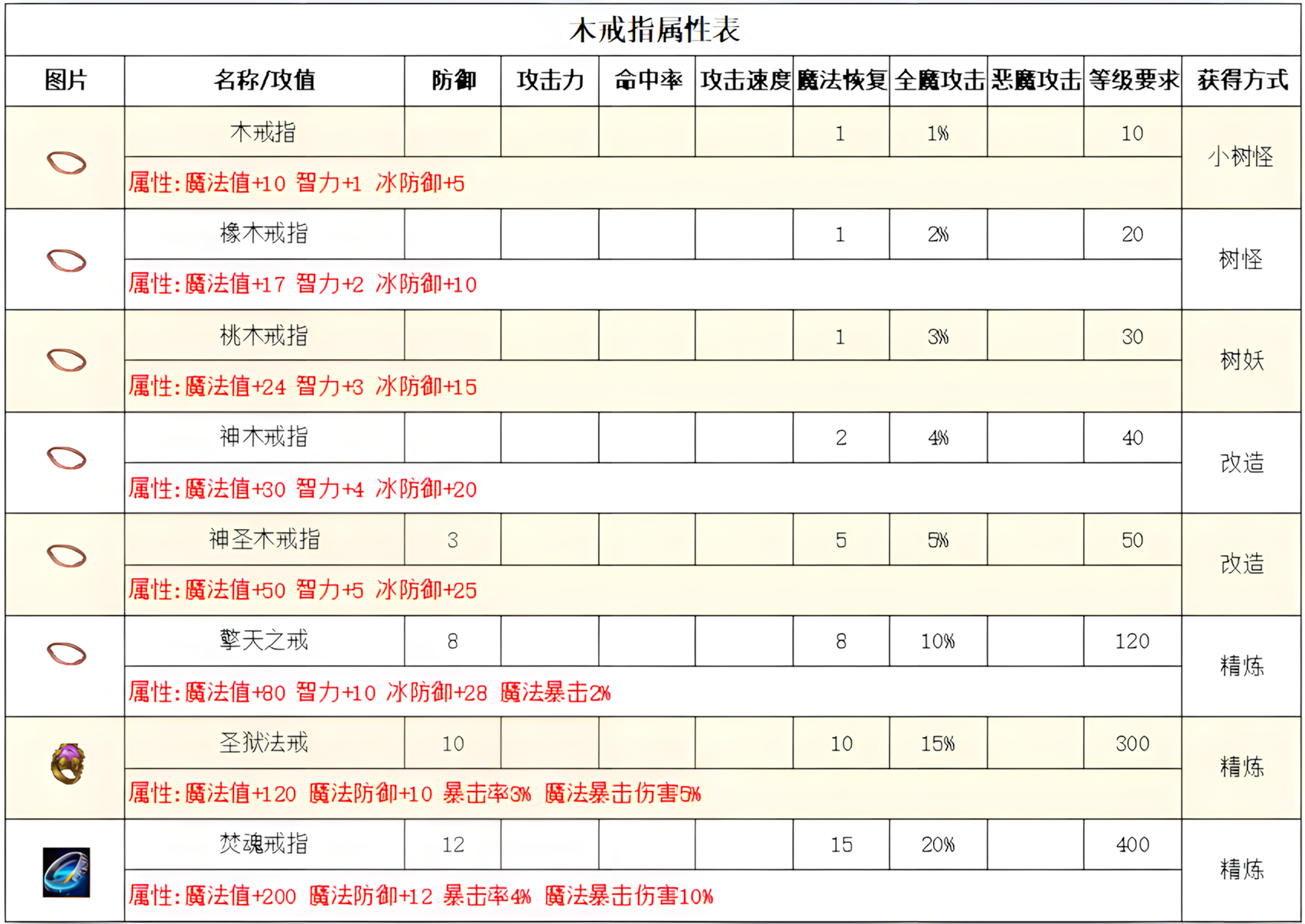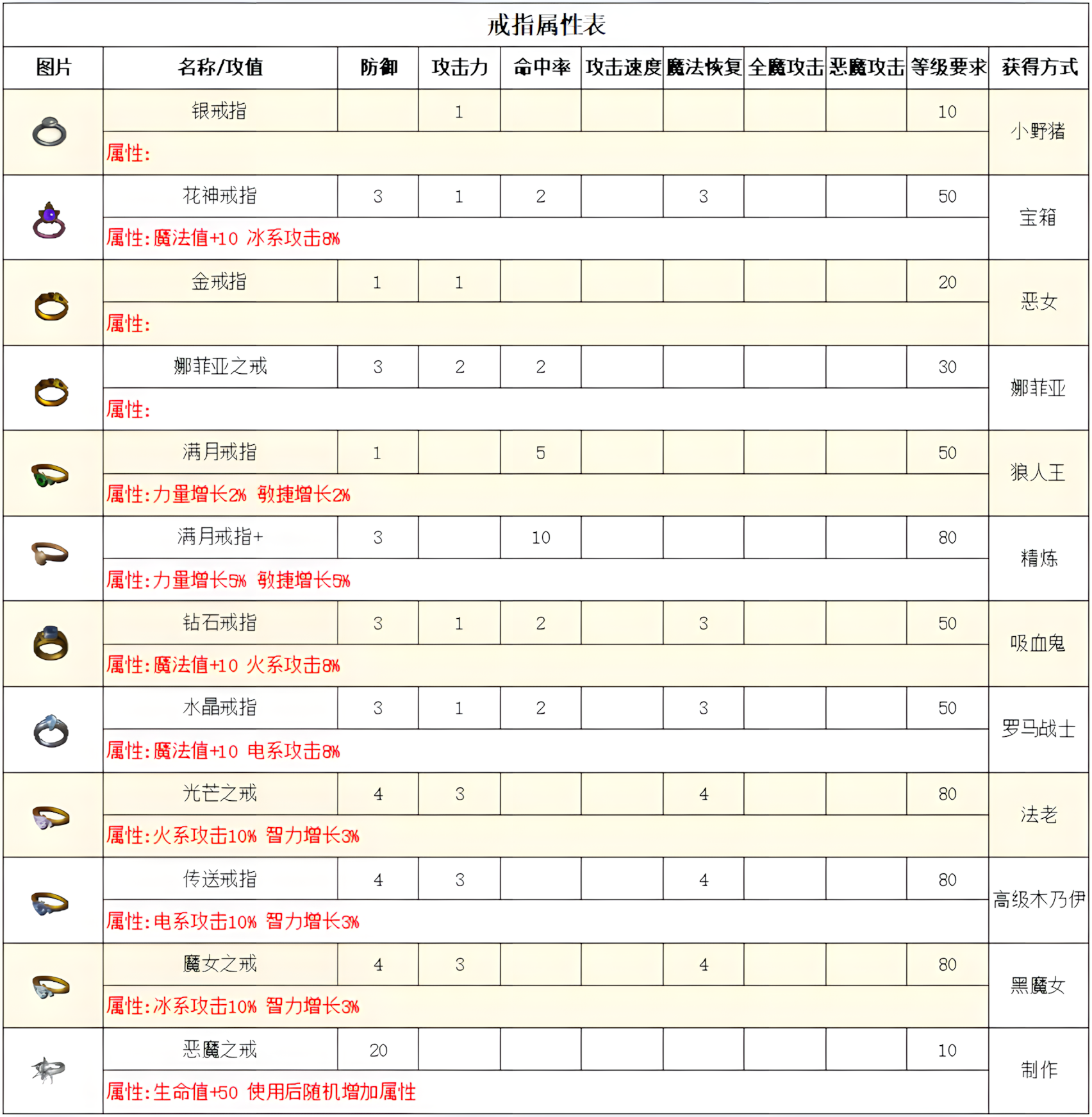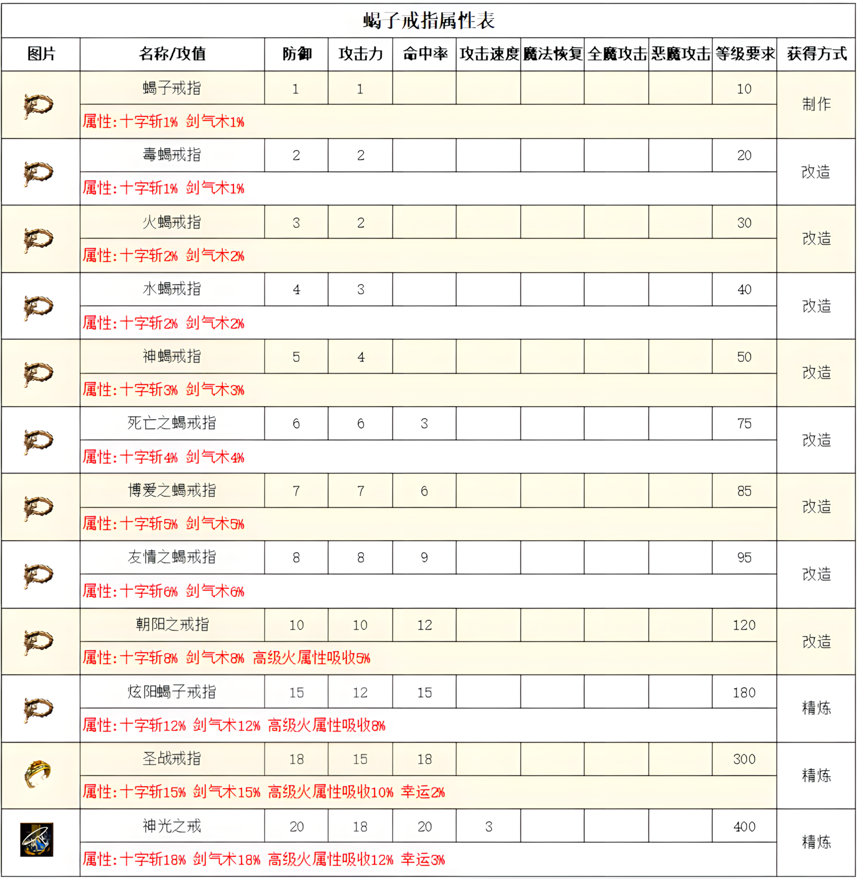 高级属性表